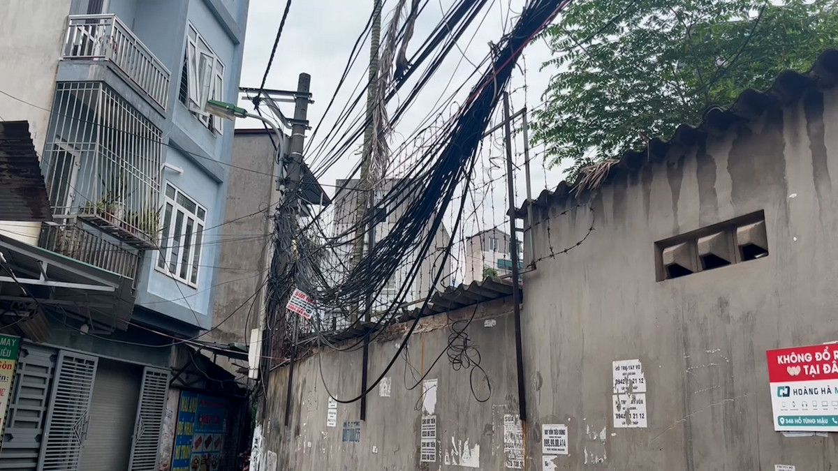 Trong các con ngõ nhỏ tại Hà Nội, những búi dây điện, cáp viễn thông đan xen chằng chịt như “mạng nhện” ngay trước nhà dân, tiềm ẩn nguy cơ cháy nổ rất cao.