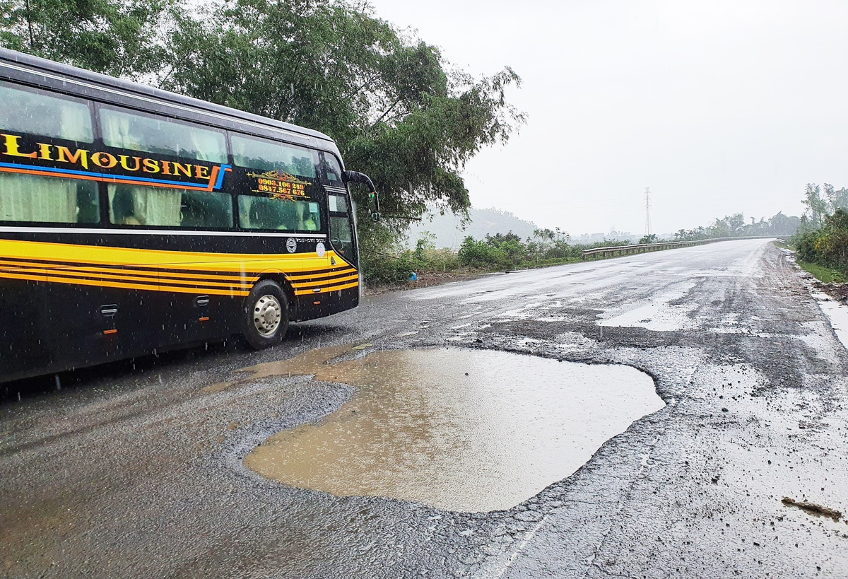 Đặc biệt, tại khu vực nút giao Túy Loan (đoạn từ Km30 - Km30+283) và nút giao Hòa Liên (đoạn từ Km17+971 - Km18+320) mặt đường bị sình lún xen lẫn ổ gà, rạn nứt nặng.