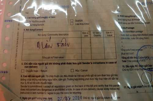 | Hoá đơn gửi hàng được khai báo là mắm tôm. Ảnh: H.Q |