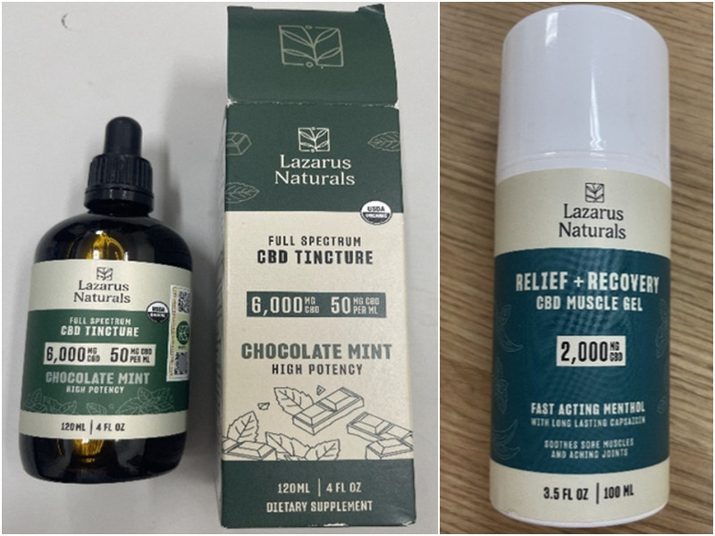 Những loại ma túy này được tiếp cận thông qua các sản phẩm có tên gọi "Lazarus Naturals Full Spectrum CBD Tincture" và "Lazarus Naturals Relief + Recovery CBD Muscle Gel”.