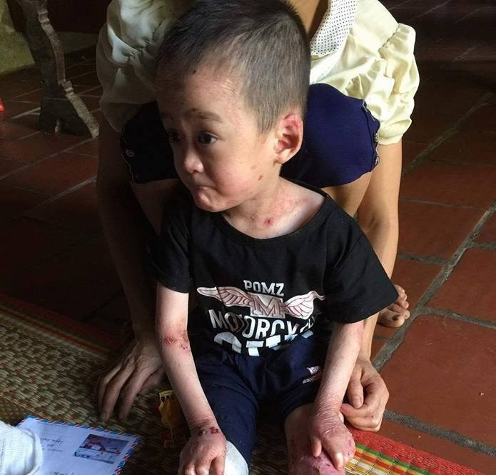 Cháu Nguyễn Tiến Khánh bị ly thượng bì bóng nước, một căn bệnh bẩm sinh không thể chữa khỏi (Ảnh: Facebook David Nguyễn)