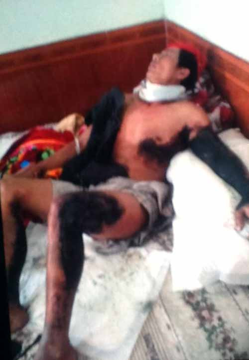 Anh Vinh bị cháy sém nửa người nhưng không được đưa đến bệnh viện cấp cứu kịp thời vì kinh tế khó khănDo chưa lo được kinh phí cứu chữa, gia đình đành để anh Vinh ở nhà chăm sóc. Đến 19h tối hôm qua (12/2), những vết cháy đen trên cơ thể anh Vinh phun ra toàn máu tươi, sau đó nạn nhân ngất lịm khiến cả nhà hốt hoảng đưa anh nạn nhân đến Bệnh viện Việt Tiệp cấp cứu.