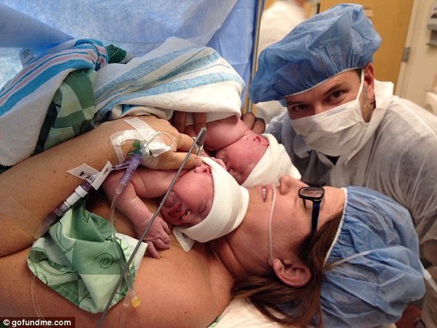 Rất may sau đó, người mẹ mất một bên mắt đã sinh hạ thành công hai bé trai vào ngày 21 tháng 12 là Piper Marie và Mason Dare. Các xét nghiệm cho thấy cặp song sinh không có dấu hiệu mắc căn bệnh ung thư.