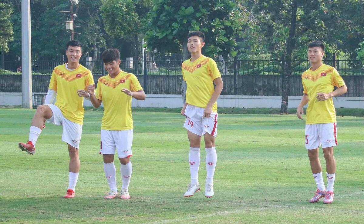U19 Việt Nam cũng bước vào buổi tập với thời tiết dễ chịu. Tâm trạng của toàn độ cũng trở nên thoải mái và vui vẻ hơn khi đã giành vé vào bán kết.