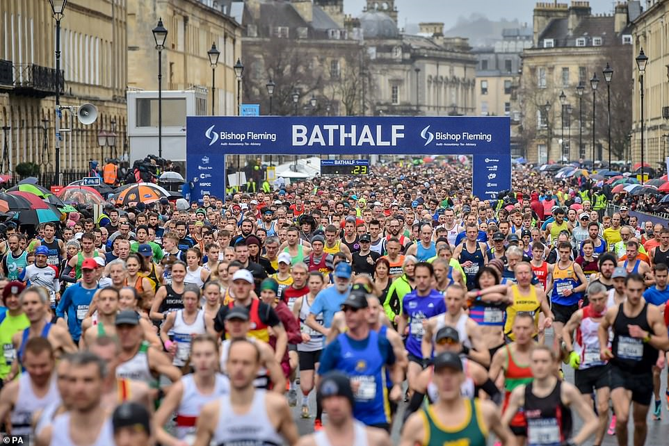 Tại thành phố Bath, miền nam nước Anh, khoảng 12.000 người cũng tham gia một cuộc đua marathon hôm 15/3.