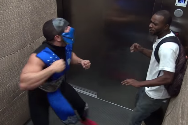 (VTC News) - Anh chàng mặc đồ giống nhân vật trong trò chơi nổi tiếng Mortal Kombat và múa võ trong thang máy khiến người đi cùng bối rối.
