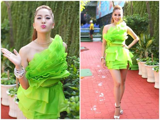 | Sau một thời gian gây chú ý với trang phục ôm sát phô diễn số đo ba vòng phản cảm, Phi Thanh Vân đổi phong cách với hình ảnh công chúa xì tin. Váy công chúa bồng xòe, băng đô điệu đà hoàn toàn không hợp với nữ người mẫu bốc lửa sinh năm 1982. |