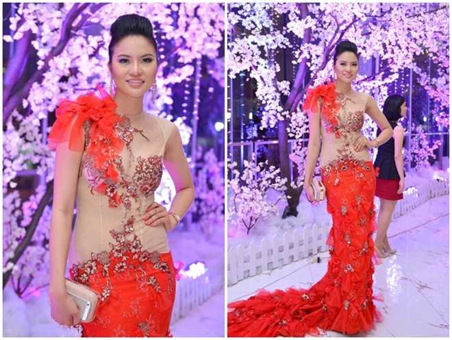 | Trang phục dạ hội của Thúy Hạnh cũng nhận phải những đánh giá là không theo kịp xu hướng chung. Chi tiết đính hạt có phần lỗi mốt và thừa thãi. |