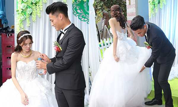 Cô dâu liên tục thầm thì to nhỏ cùng chú rể cực kỳ tình cảm