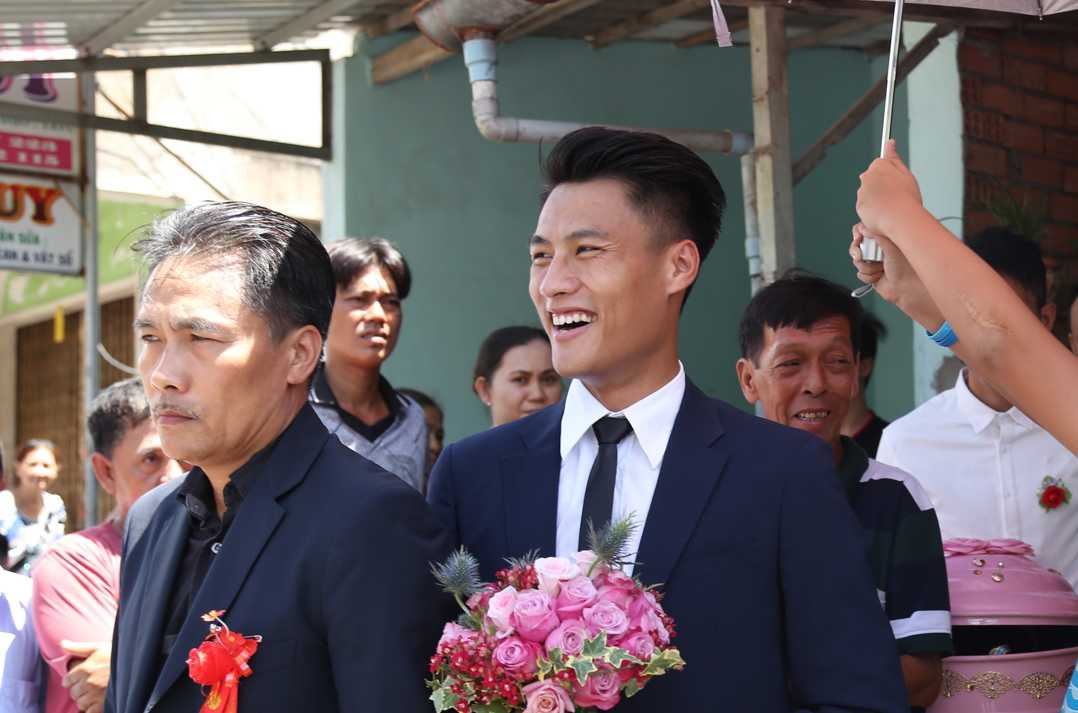 Mạc Hồng Quân bảnh bao, cười rạng rỡ đến nhà Kỳ Hân trong lễ ăn hỏi.