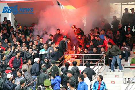 | Pháo sáng được các CĐV Hải Phòng đốt lên trước trận đấu (Ảnh: Quang Minh) |
