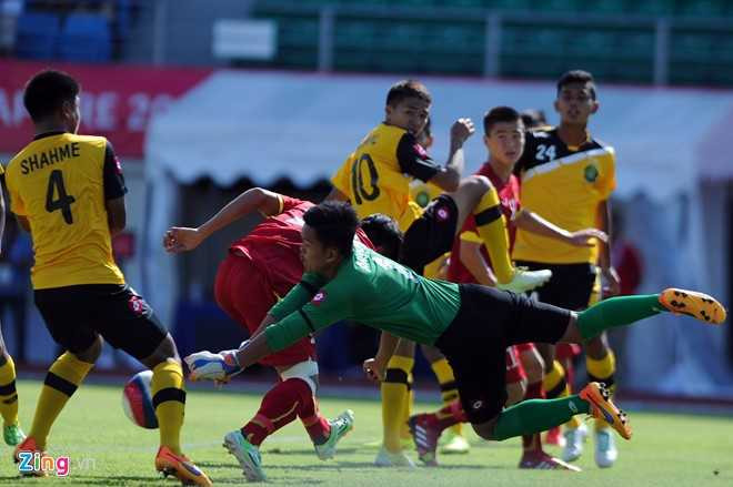 (VTC News) - Sau pha làm tường của đồng đội, Mạc Hồng Quân ra chân nhanh, vô lê đập đất khiến thủ thành Brunei không kịp phản xạ, nâng tỷ số lên 3-0.