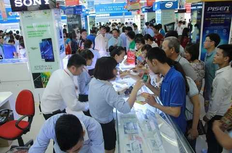 | Các gian hàng đều chật kín khách hàng hỏi thông tin sản phẩm |