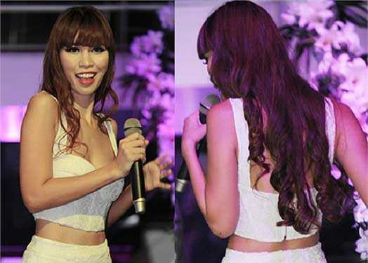 | Hà Anh thường mặc trang phục hở khi xuất hiện trước công chúng. |