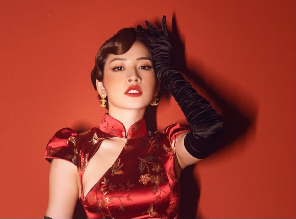 Đỉnh cao của sự kết hợp kiểu tóc với sườn xám phải kể đến Chi Pu. Cô nàng lựa chọn sườn xám cách điệu khá táo bạo mix cùng kiểu tóc búi thấp với phần mái uốn retro theo phong cách Thượng Hải. Kiểu tóc này đem đến cho Chi Pu vẻ đẹp sang trọng, quý phái đầy hoài niệm về những nữ minh tinh thập niên 30.