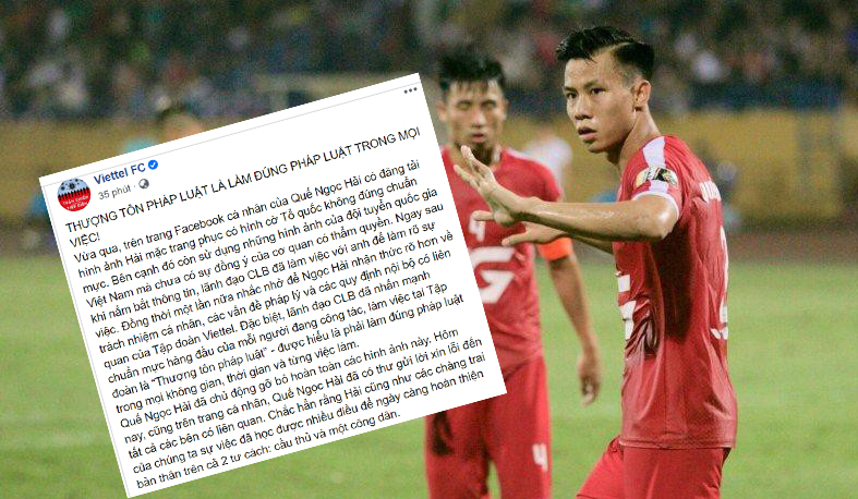 Hôm nay, cũng trên trang cá nhân, Quế Ngọc Hải đã có thư gửi lời xin lỗi đến tất cả các bên có liên quan. Chắc hẳn rằng Hải cũng như các chàng trai của chúng ta qua sự việc đã học được nhiều điều để ngày càng hoàn thiện bản thân trên cả 2 tư cách cầu thủ và một công dân", thông báo của CLB Viettel viết.