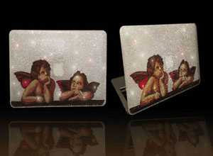 Bên cạnh yếu tố chơi sang bằng hàng vạn viên pha lê, Crystallize-your-Design còn đảm bảo tính thẩm mỹ cho sản phẩm Macbook Air 2011 với thiết kế bức tranh hai thiên thần nhỏ đang chụm giữa logo quả táo cắn dở.