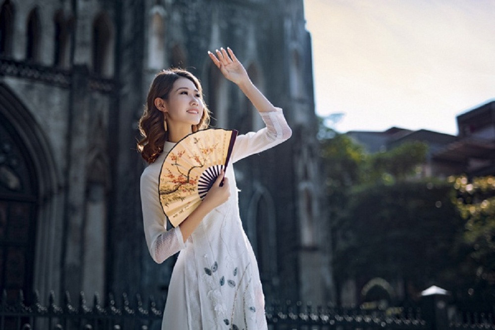 Tư thế tạo dáng cuối cùng là chụp ảnh sau lưng. Với cách tạo dáng này, các bạn cần mua thêm chút phụ kiện để bức hình nhìn có hồn hơn. Một số gợi ý như nón lá, hoa sen, hoa súng hay một bó cúc hoạ mi,... Chị em chụp ảnh áo dài cũng đừng quên chọn những đôi giày cao gót để tổng thể outfit của mình thêm thon thả, thướt tha nhé.