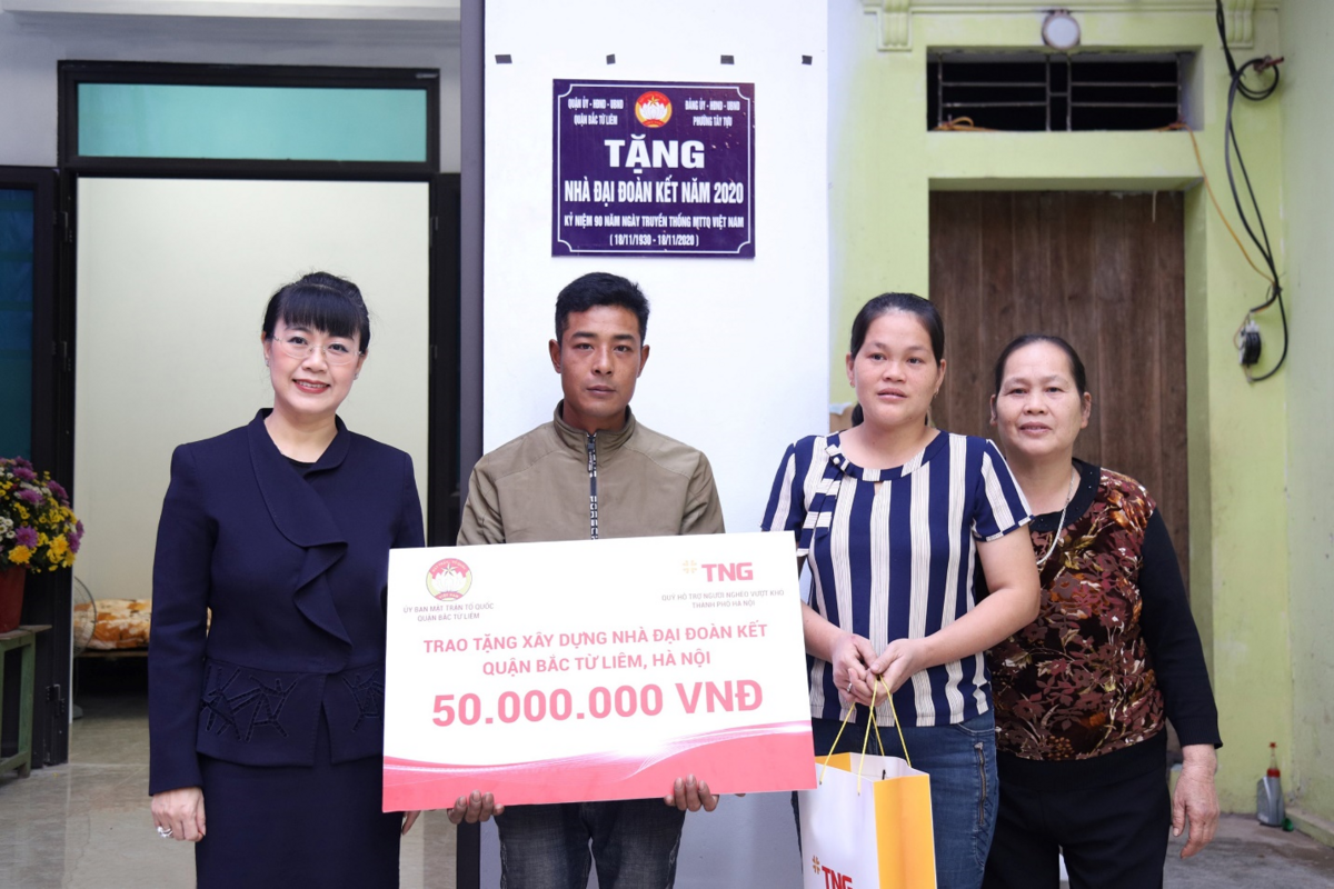 Căn nhà của bà Tự Thị Hương là một trong hai nhà đại đoàn kết được Tập đoàn TNG Holdings Vietnam trao tặng cho hộ cận nghèo tại huyện Bắc Từ Liêm (Hà Nội) trong năm nay. Trước đó, đầu tháng 10/2020, đại diện Tập đoàn trao tặng nhà đại đoàn kết cho gia đình ông Nguyễn Xuân Thưởng, thường trú tại phường Phú Diễn. Ở tuổi thất thập, vợ chồng ông Thưởng vừa vất vả mưu sinh lại phải chăm hai con khuyết tật, do vậy, ngôi nhà mới khang trang là cả giấc mơ mà gia đình ông không bao giờ dám nghĩ đến. Ông chia sẻ việc được trao tặng ngôi nhà mới là động lực to lớn giúp gia đình ông nỗ lực vươn lên trong cuộc sống.