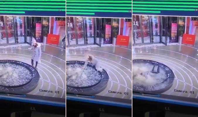 Cô gái trẻ mải dùng điện thoại không để ý đến xung quanh, dù ngã úp mặt vào bể nước, tay vẫn cầm điện thoại không rời.