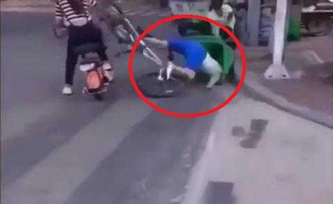 Mải ngắm gái xinh, thanh niên ngã đâm đầu vào thùng rác
