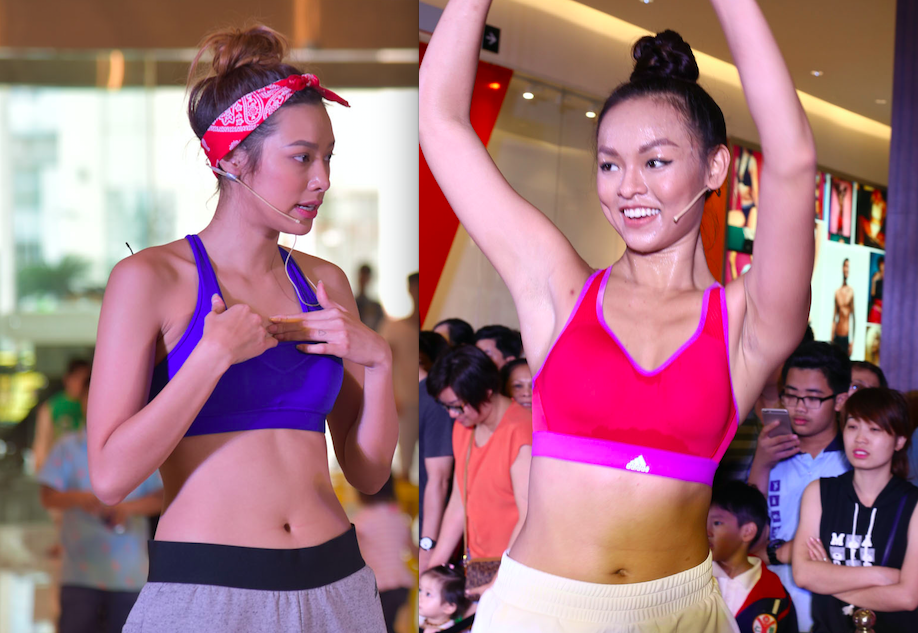 Được sự động viên của nhiều người xung quanh, hai “chân dài” 9X càng hăng say với những thử thách mà các huấn luyện viên đưa ra. Thậm chí, hai cô nàng đã dốc hết sức trong hơn gần một giờ đồng hồ để vừa tập, vừa kêu gọi các fan tham gia để nâng cao sức khỏe và nhận được những phần quà giá trị.