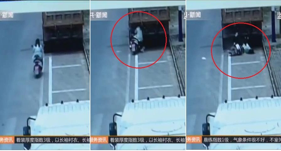 Cô gái đi xe máy không đội mũ bảo hiểm mải nhìn điện thoại, đâm sầm vào đuôi xe tải đỗ bên đường ở Trung Quốc.