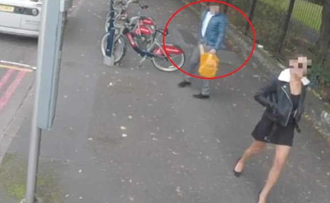 Nam thanh niên ngơ ngẩn ngoái nhìn người đẹp, vấp phải hàng xe đạp, ngã dúi dụi trên vỉa hè đường phố London (Anh).