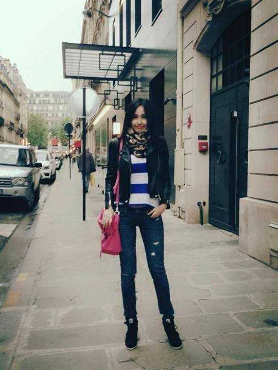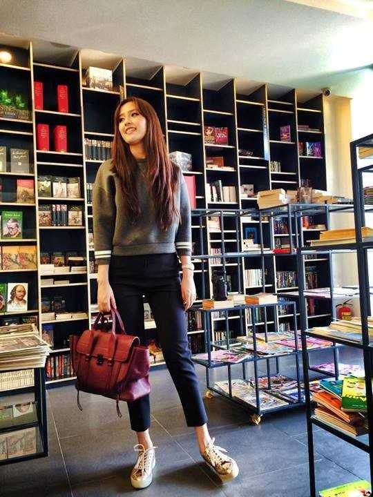 Nhìn cô giống một sinh viên hơn là một hoa hậu khi xuất hiện trên đường phố.
