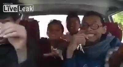 Bọn trẻ mải quay phim tự sướng trên ô tô mà quên mất việc lái xe.