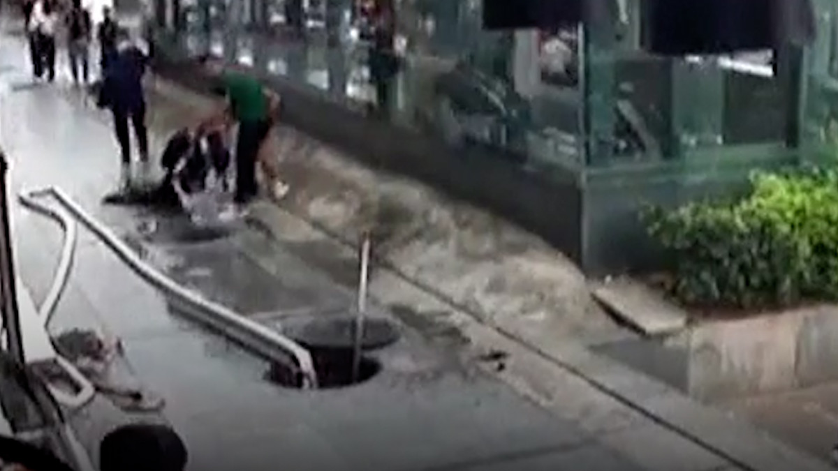 Mải xem điện thoại, người đàn ông rơi xuống hố ở Trung Quốc