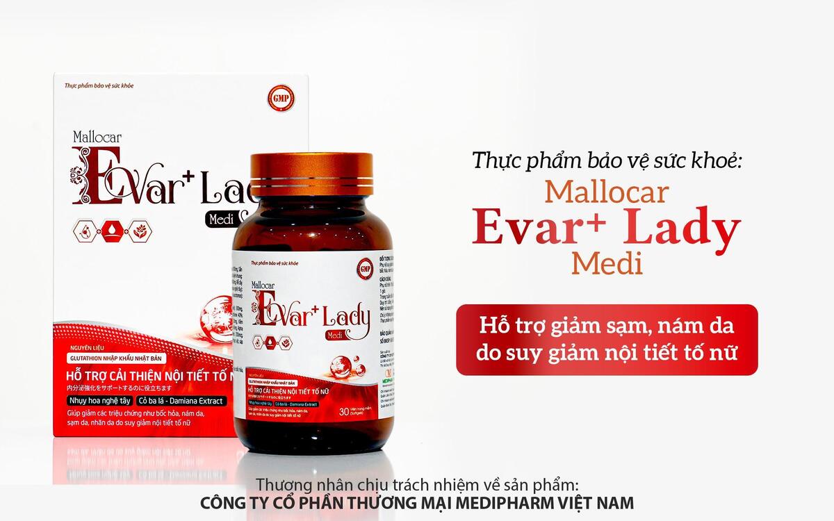 Với các thành phần được chọn lọc kỹ càng và có tác dụng tối ưu, viên uống Mallocar Evar+ Lady Medi là sản phẩm bổ sung an toàn và hiệu quả để giúp cải thiện, cân bằng nội tiết tố nữ, hỗ trợ giảm tình trạng bốc hoả, nhăn da, sạm, nám da do suy giảm nội tiết tố.