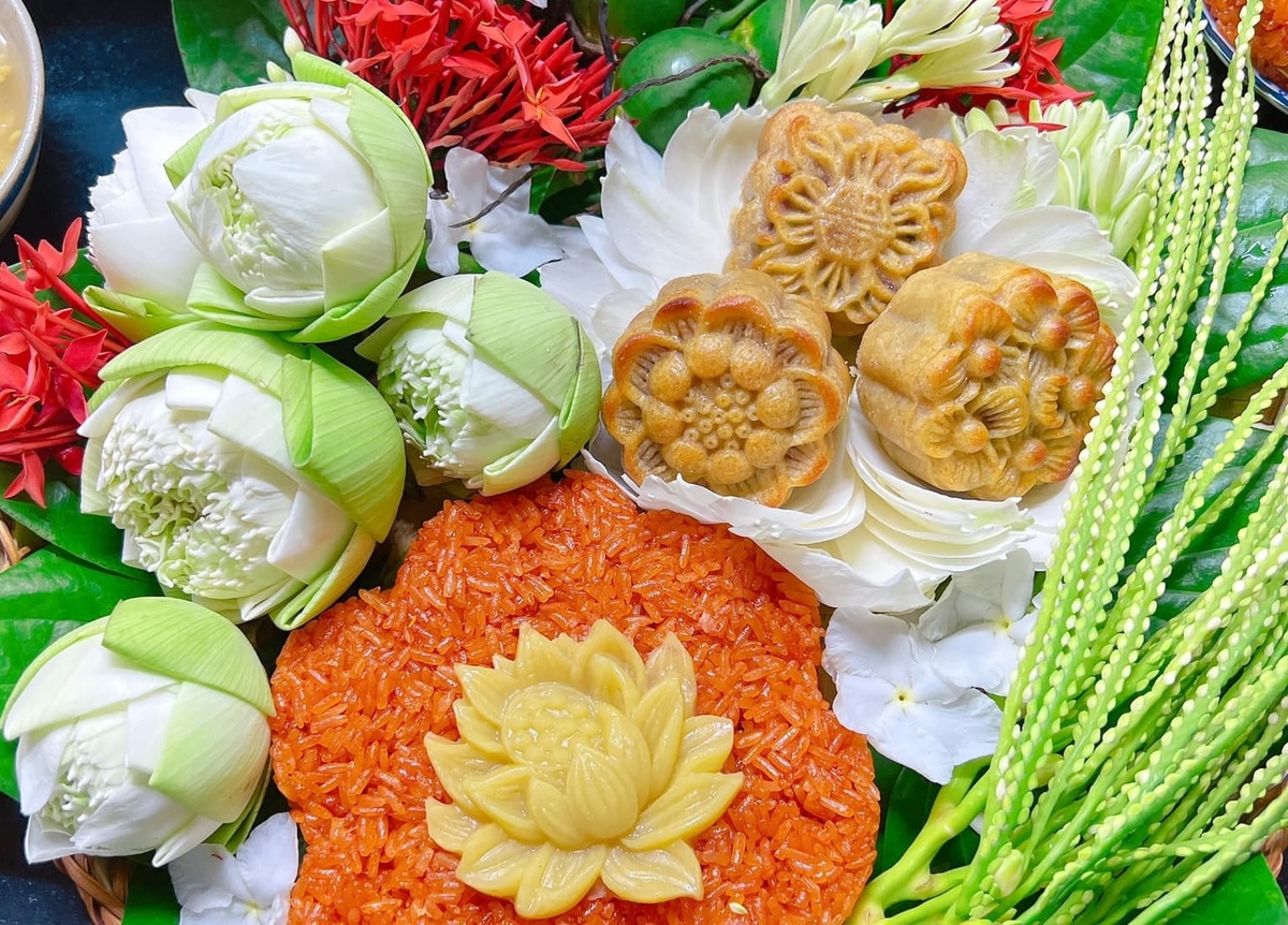 Mâm cỗ mặn thường gồm những món truyền thống như gà luộc, xôi gấc, xôi đỗ xanh, canh miến mọc, thịt bò xào, chả nem, tôm hấp sả… Đây đều là những món quen thuộc, mang tính sum vầy và gợi hương vị ấm cúng của bữa cơm gia đình. Các gia đình có thể linh hoạt lựa chọn thực phẩm theo mùa và khẩu vị riêng.