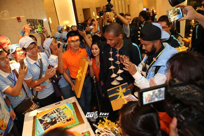 | Fan tổ chức sinh nhật cho Fernando và Clichy (Ảnh: Phạm Thành) |