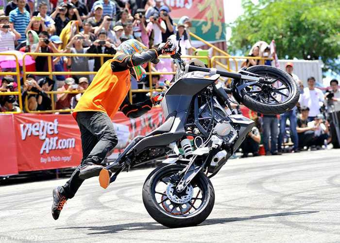 Màn diễn mạo hiểm với môtô mang thương hiệu KTM. Ảnh Hoàng Trần