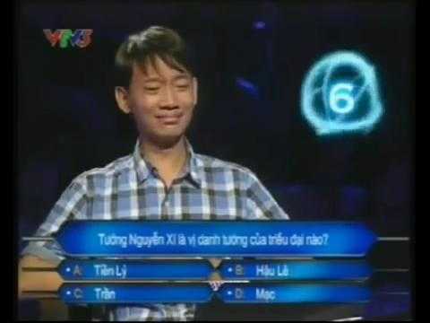 (VTC News) - Trong một tập phát sóng của chương trình "Ai là triệu phú" gần đây, phần chơi của chàng trai tên Doãn Thế Hà đã khiến khán giả được phen cười.