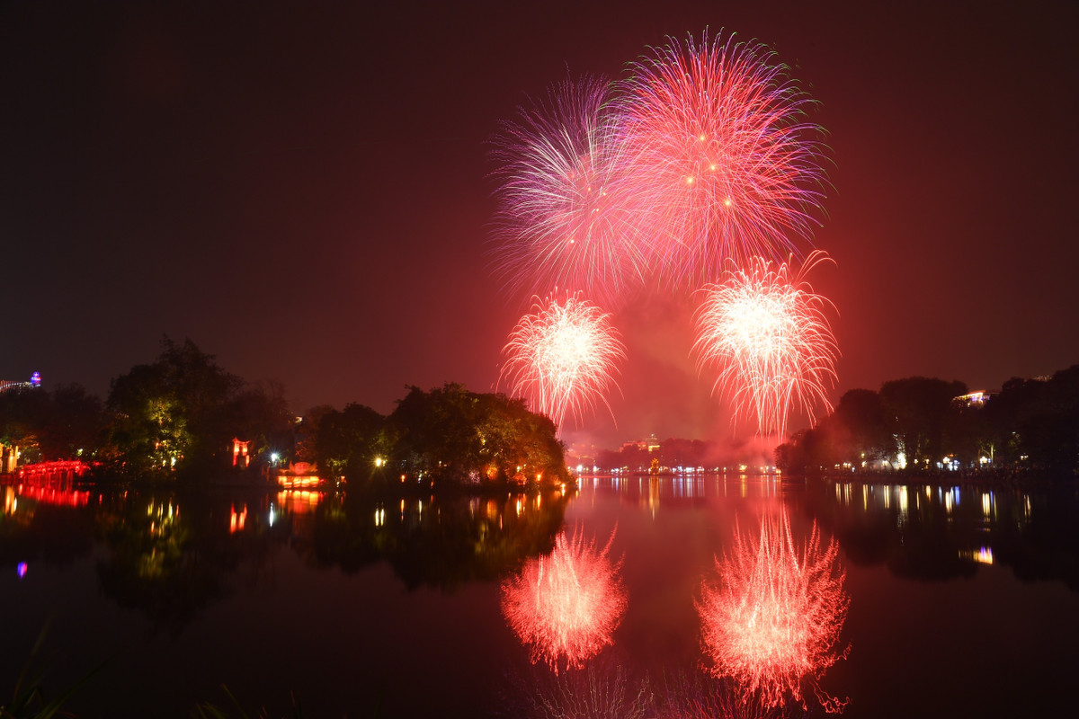 Hà Nội càng về đêm càng rét, nhưng trời trong, gió không mạnh nên rất thuận lợi cho các màn pháo hoa khoe sắc.