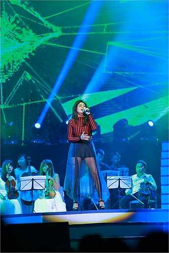 Trẻ trung nhất trong dàn ca sĩ của 'Đêm tình nhân 2', Diễm Sương được ưu ái mở đầu phần trình diễn ngay sau đó với hit Giận anh mà cô từng 'làm mưa làm gió' ở hải ngoại bằng phong cách sôi nổi, nóng bỏng.
