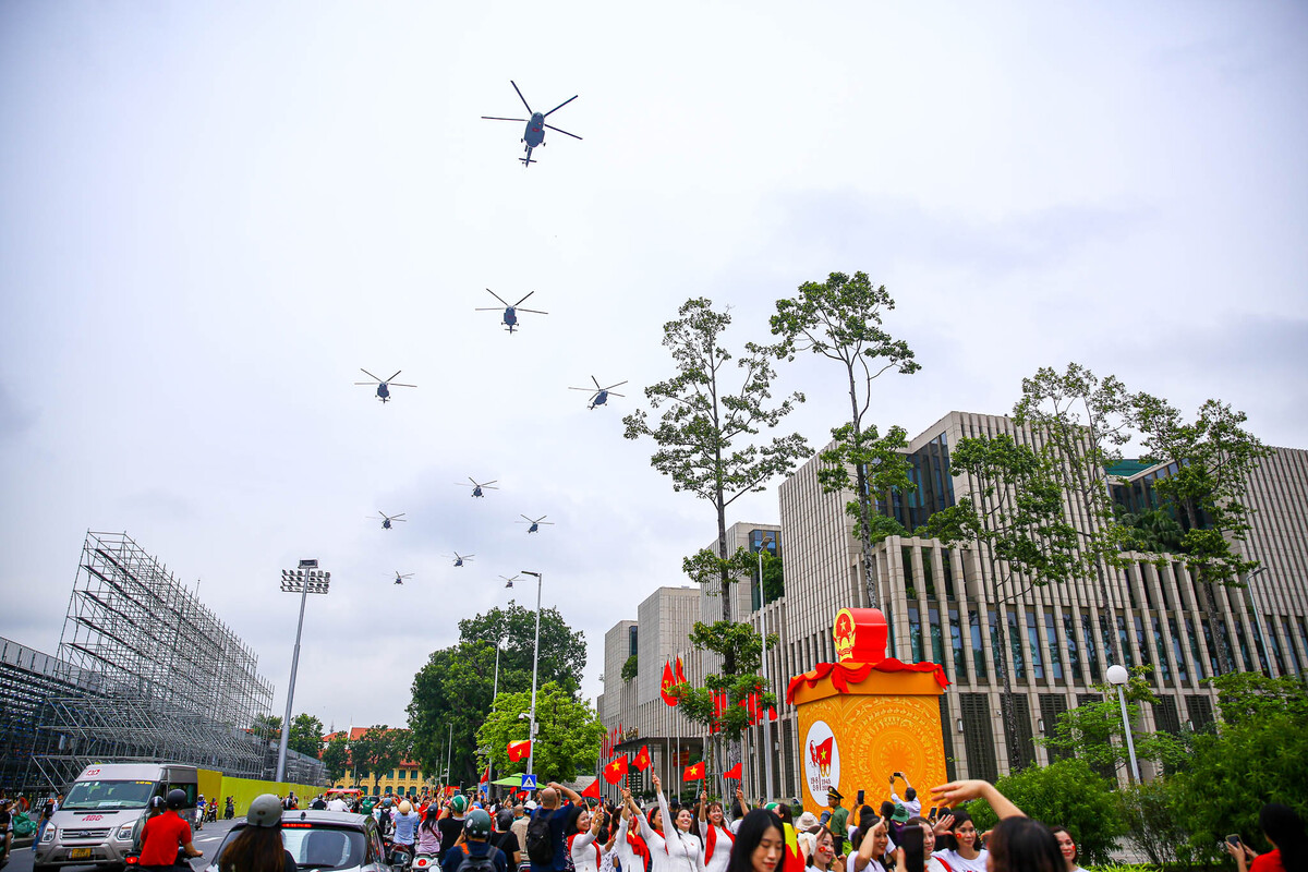 Khoảng 11h ngày 21/8, biên đội 10 máy bay trực thăng, bay đội hình tiến qua khu vực trung tâm Hà Nội, bay qua Quảng trường Ba Đình.