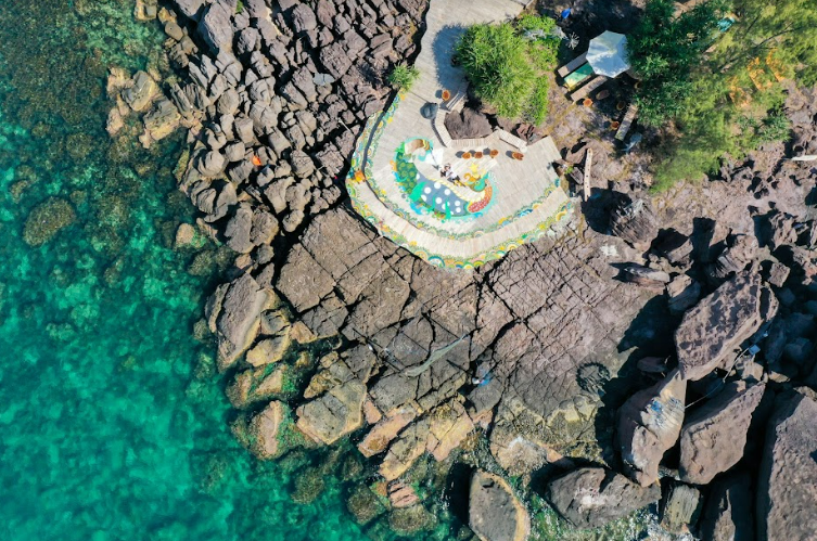 Những ghềnh đá, biển khơi ngút tầm mắt, chân trời xanh xa xa, hàng dừa nghiêng nghiêng trong gió, tất cả vẽ bức tranh Hòn Thơm vốn đã đẹp lại càng thiên đường hơn khi được ngắm nhìn từ độ cao lý tưởng của Mắt đại bàng.