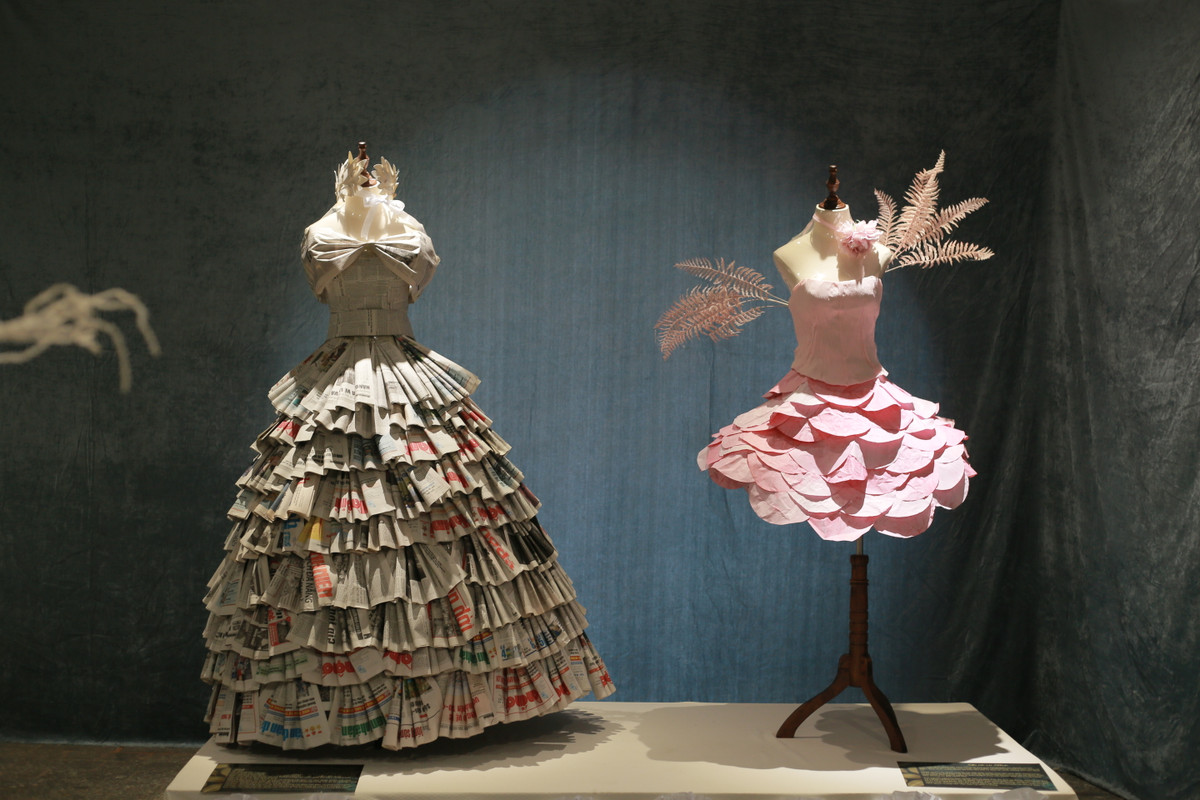 Dưới bàn tay khéo léo học sinh, những tờ giấy báo, nilon, vải vụn... đã được thiết kế thành những bộ trang phục tái chế đầy ấn tượng và độc đáo.
