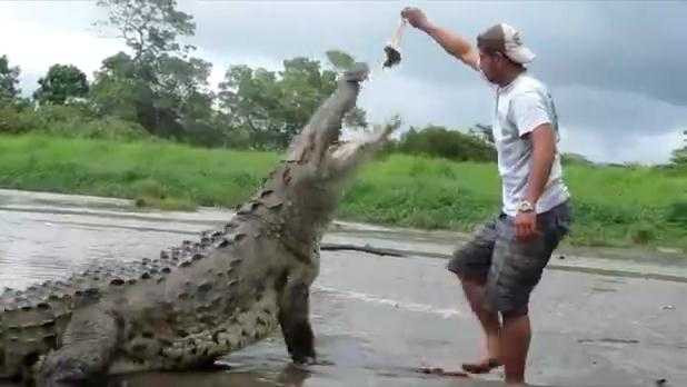 (VTC News) - Chàng trai mạo hiểm nhử con cá sấu bằng miếng thịt, rất may là không có hậu quả nghiêm trọng xảy ra.