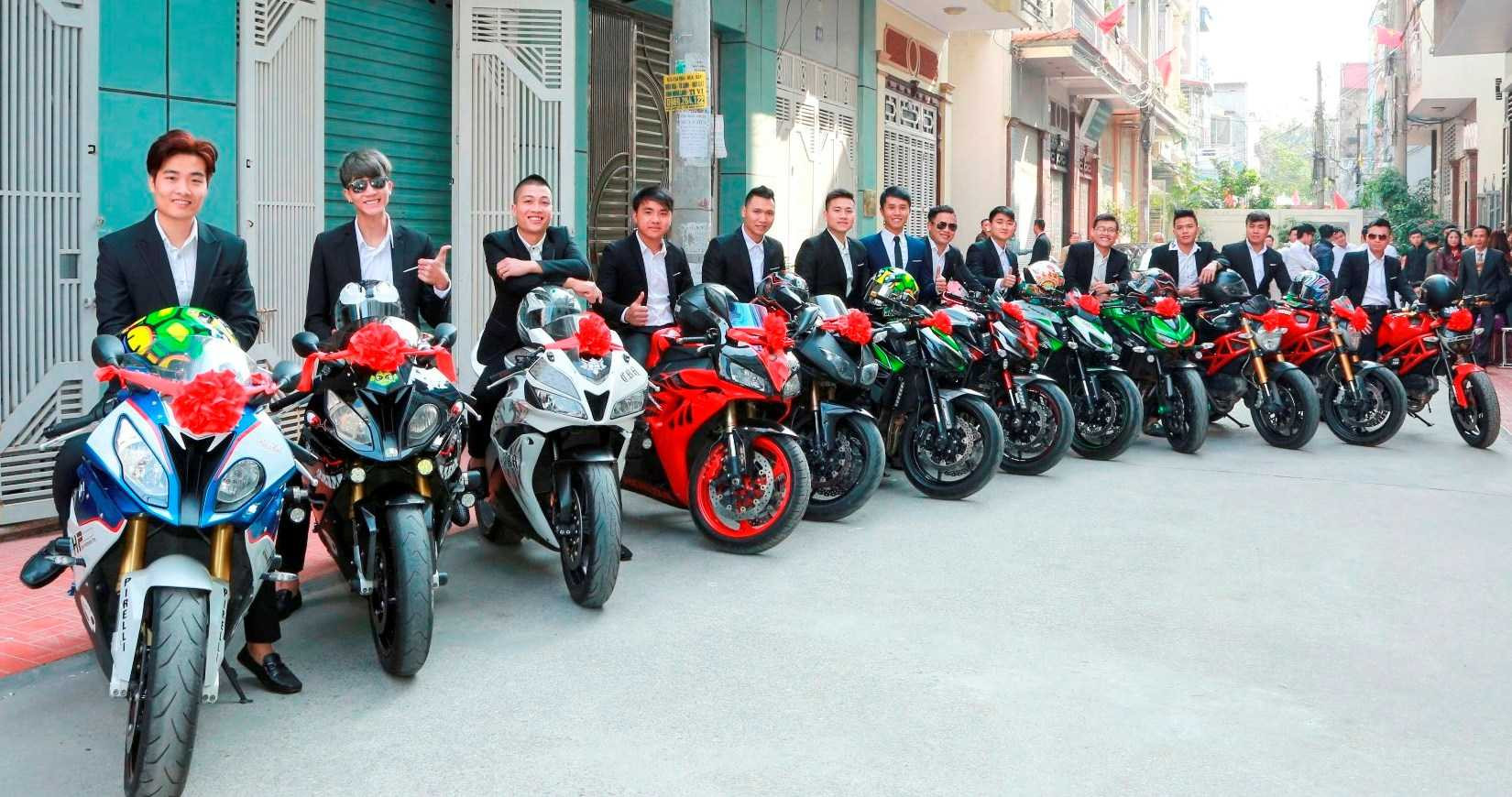 Chú rể rất hãnh diện vì dàn xe phân khối lớn để đón dâu