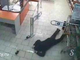 Ở Nga, một người đàn ông vào siêu thị trộm 3 chai rượu rồi cố gắng chạy thoát ra ngoài.
