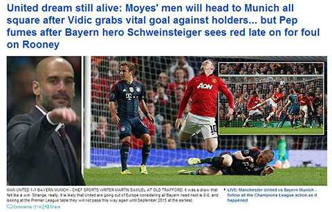 Trên tờ Daily Mail, một bài tường thuật cỡ lớn về trận đấu đêm qua của Quỷ đỏ đã được giật tít: "Giấc mơ của United vẫn tồn tại".