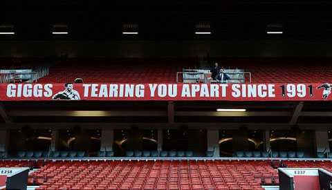 Những băng rôn ca ngợi Giggs đang được treo khắp sân Old Trafford. Đây quả là 1 ngày ý nghĩa với huyền thoại người xứ Wales.