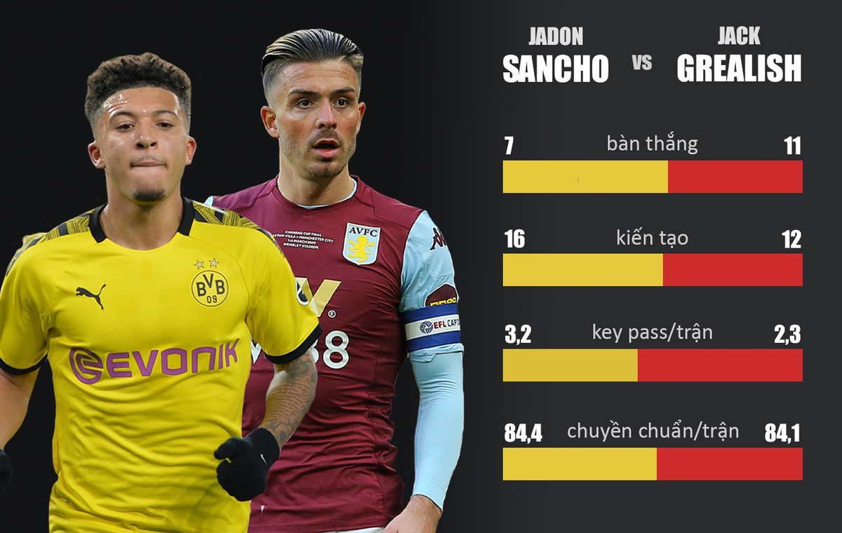 Grealish chơi gần 100 trận tại Ngoại hạng Anh. Ở tuổi 25, thủ quân Aston Villa chứng tỏ đẳng cấp và bước vào độ chín sự nghiệp. Trong khi đó, Sancho có thể mất thời gian để làm quen cách chơi.
