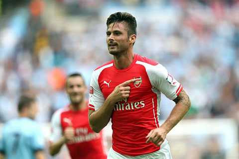 | Giroud ăn mừng sau khi ghi bàn vào lưới Man City |