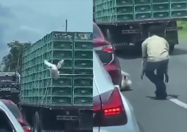 Tưởng thoát nạn, chú gà lại vô tình rơi vào hoàn cảnh éo le khác sau khi thoát khỏi xe tải.