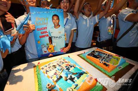 Fan Man City chúc mừng sinh nhật Clichy và Fernando (Ảnh: Quang Minh)